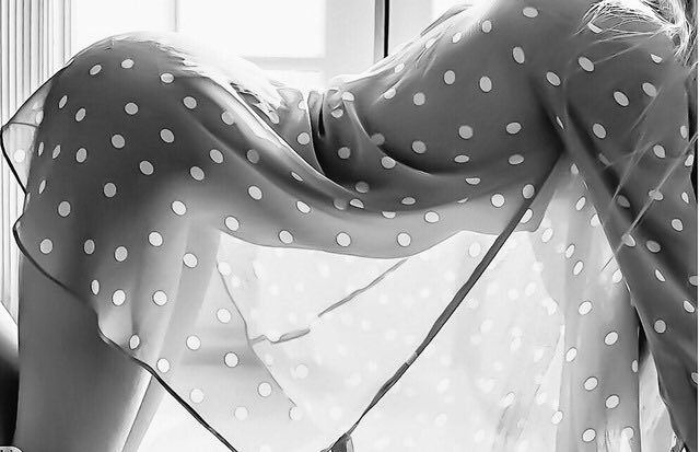 Strangely, I was disappointed. Until I saw the garment. A VERY sheer, polka dot wisp of a dress. It was indeed a garment, but a barely there one. Milord, who had followed me into the bathroom, grinned.