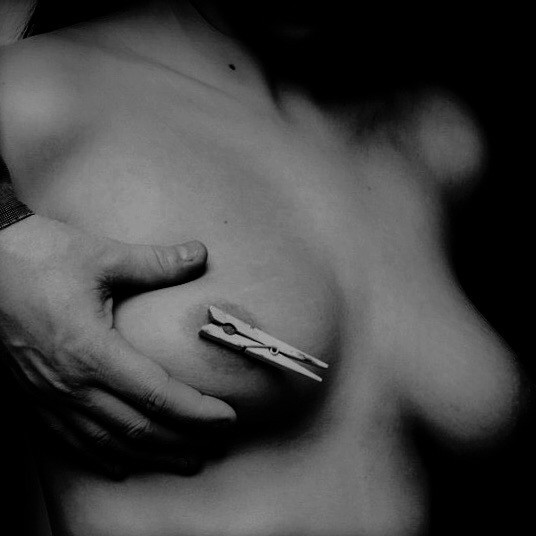He never leaves my nips clipped for more than 20 minutes, but per the rules of our Staycation, he would put something in or on me every minute for 24/7. Sure enough, he stood behind me, jiggled my tits up and down which jiggled the clothes pins and made me gasp – and get wetter that I was before! – and, grasping both clips at the same time, pulled them off.
